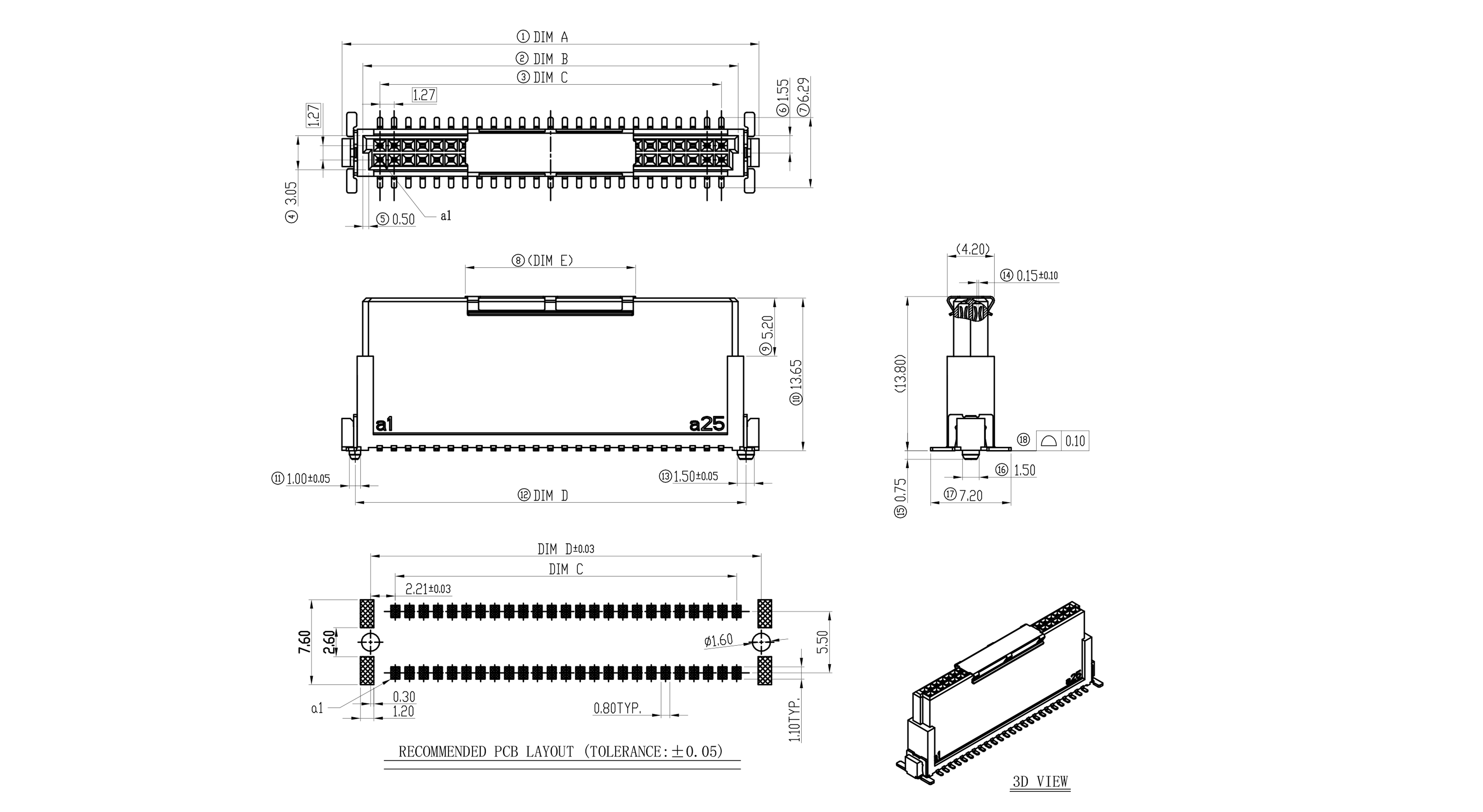 Material: 絕緣部分:LCP(UL94V-0) 接觸部分:鎳銅